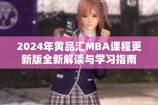 2024年黄品汇MBA课程更新版全新解读与学习指南